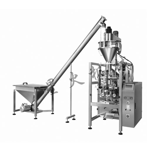 接通電源將溫度設(shè)置恒溫→設(shè)置包裝機(jī)參數(shù)(制袋尺寸及包裝重量)→人工上料到儲(chǔ)料斗振動(dòng)下料至螺桿提升機(jī)→螺桿計(jì)量器→包裝機(jī)→打印生產(chǎn)日期→制袋→充填物料→充氣→封合包裝→切斷→包裝成品輸出全過程;