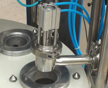 ○ 該灌裝生產(chǎn)線具有六個(gè)同步注脂灌裝頭,油脂可均勻地被擠壓灌裝到容器里。