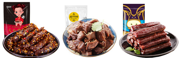 自動(dòng)化大型全套牛肉干包裝機(jī)械樣品展示