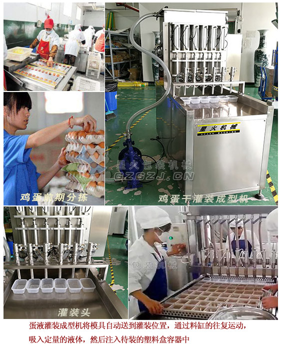 蛋液經(jīng)過(guò)攪拌之后就進(jìn)入了定型程序,蛋液灌裝成型機(jī)將模具自動(dòng)送到灌裝位置,蛋液灌裝機(jī)的計(jì)量缸分別連接灌裝頭,通過(guò)料缸的往復(fù)運(yùn)動(dòng),吸入定量的液體,然后注入待裝的塑料盒容器中;整機(jī)采用全不銹鋼產(chǎn)品制成,拆裝簡(jiǎn)單,易清洗,符合食品衛(wèi)生要求,氣動(dòng)定量灌裝,六個(gè)灌裝嘴同時(shí)出料,結(jié)構(gòu)合理,操作方便,易于維護(hù),維修,便于清洗;雞蛋干蛋液灌裝成型機(jī)已成為雞蛋干生產(chǎn)線中必不可少的灌裝設(shè)備;雞蛋干灌裝成型后,然后鹵制,較后經(jīng)過(guò)真空包裝機(jī)包裝,成品基本上就完成啦
